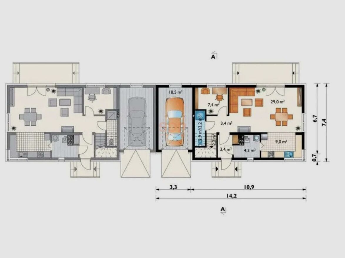 Dodatkowo garaż 18,3m2 oraz pomieszczenie nad garażem 16,4m2